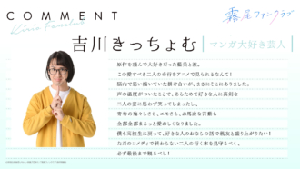 TVアニメ『霧尾ファンクラブ』の放送開始に先立って、各界の著名人よりスペシャルコメントが到着した。