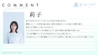TVアニメ『霧尾ファンクラブ』は、MBS/TBS系28局“スーパーアニメイズムTURBO”枠にて4月2日より全国同時放送となる。寄せられたコメントを読みながら、アニメ放送をお楽しみにお待ちいただきたい。